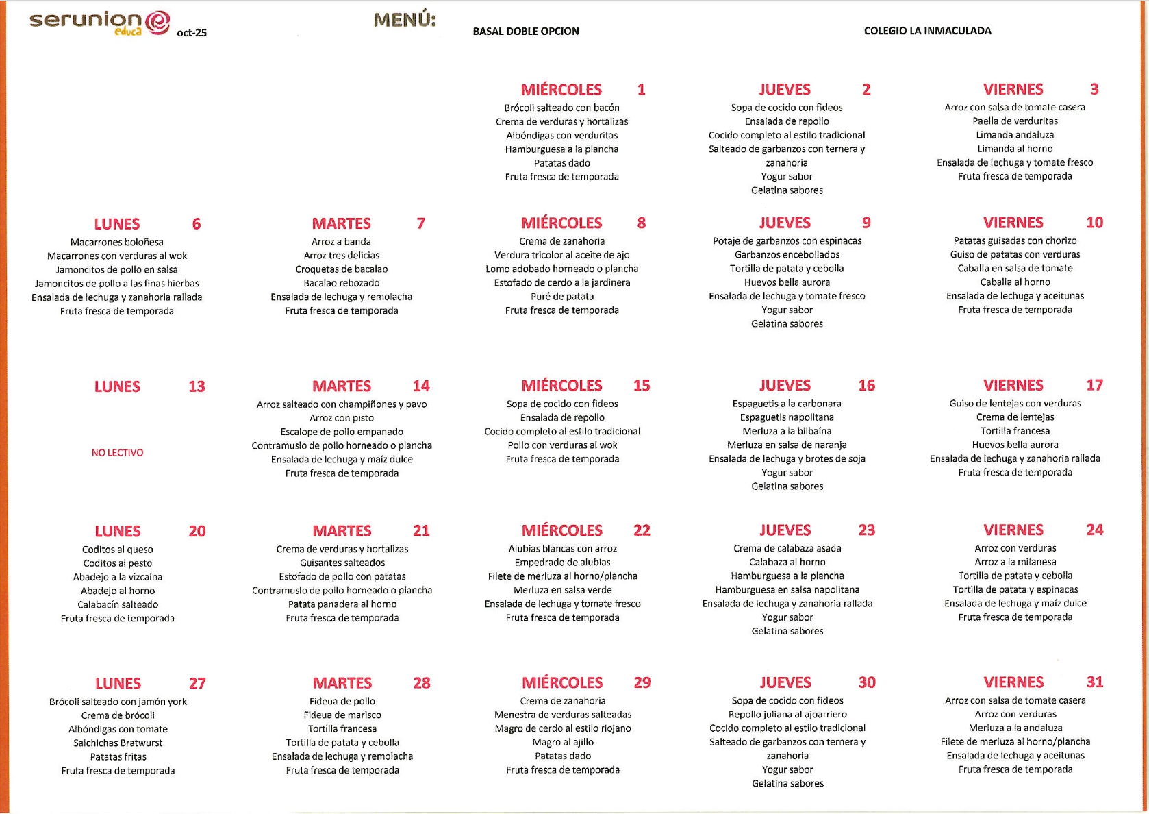 Descarga en PDF todas las opciones de menú: (CLICK AQUÍ)