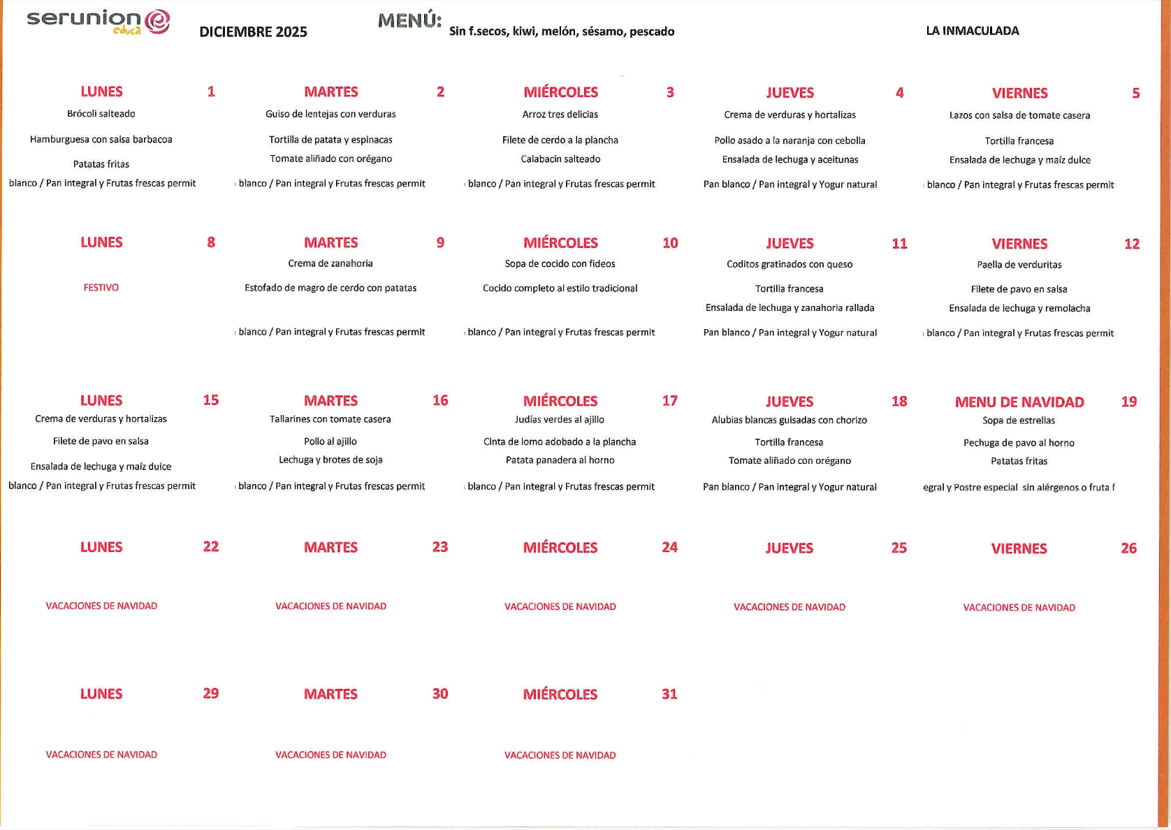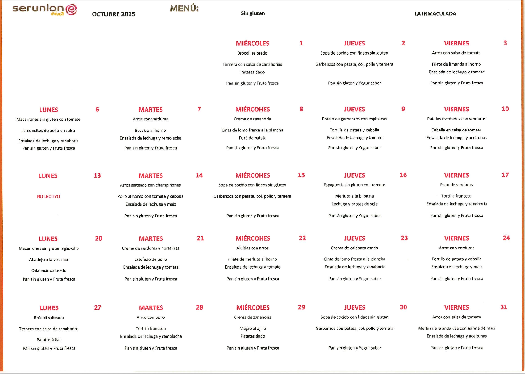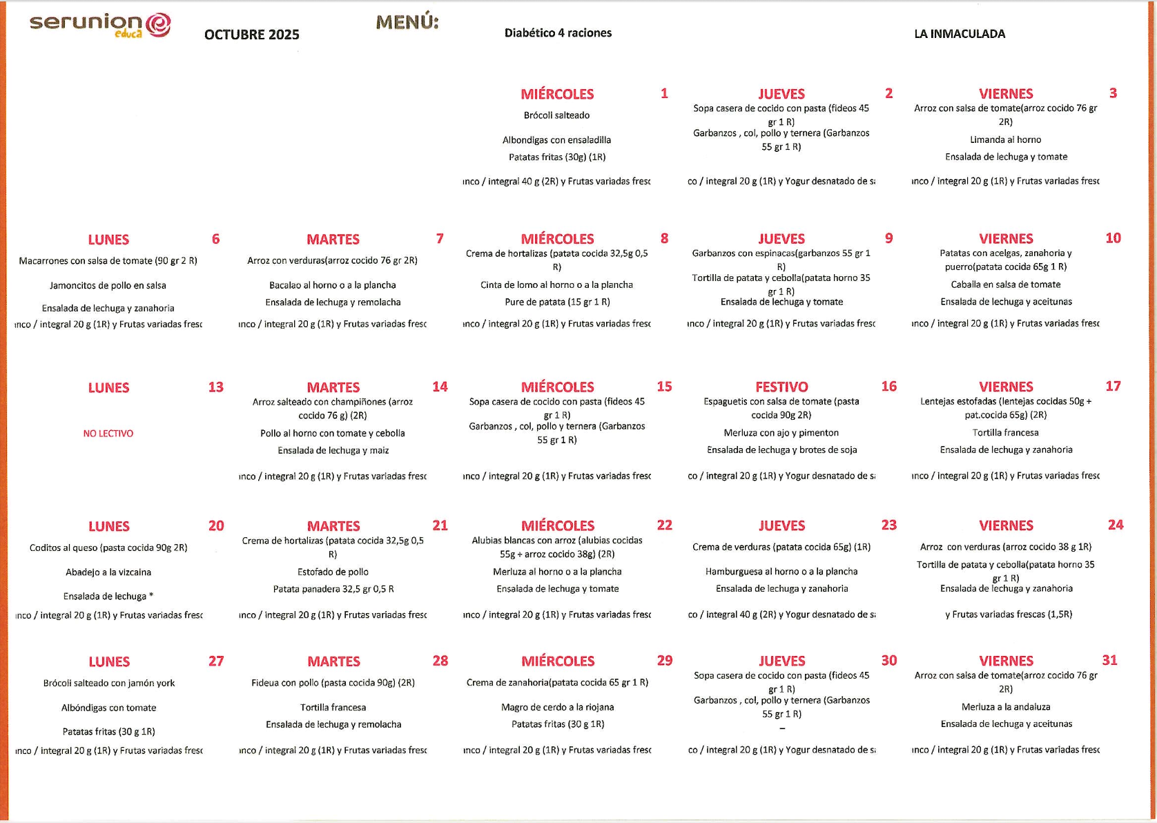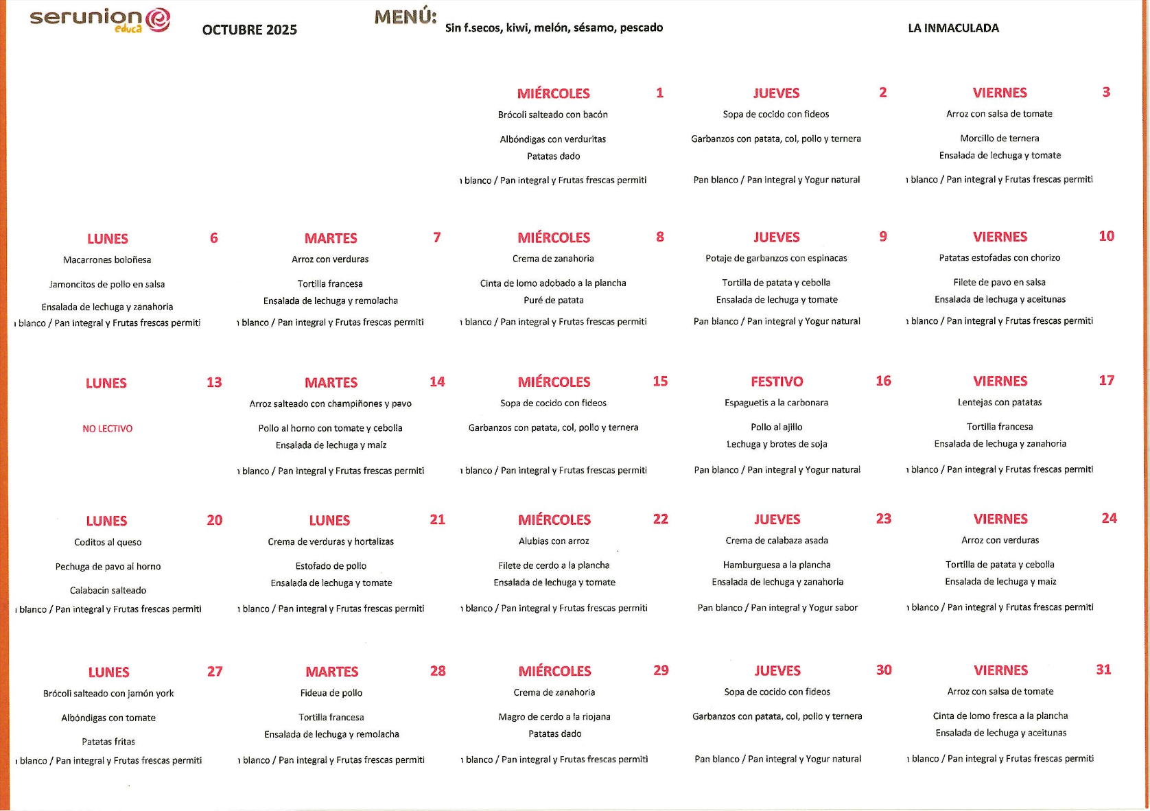 En el colegio también disponemos de menú adaptado a todas las necesidades de nuestro alumnado.