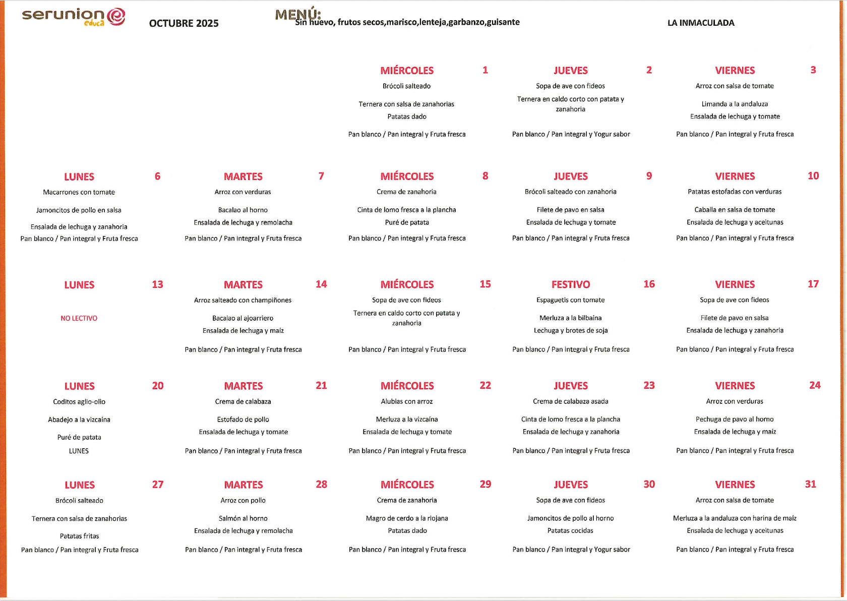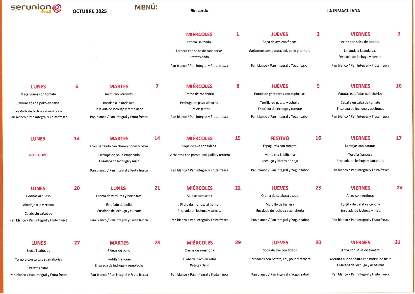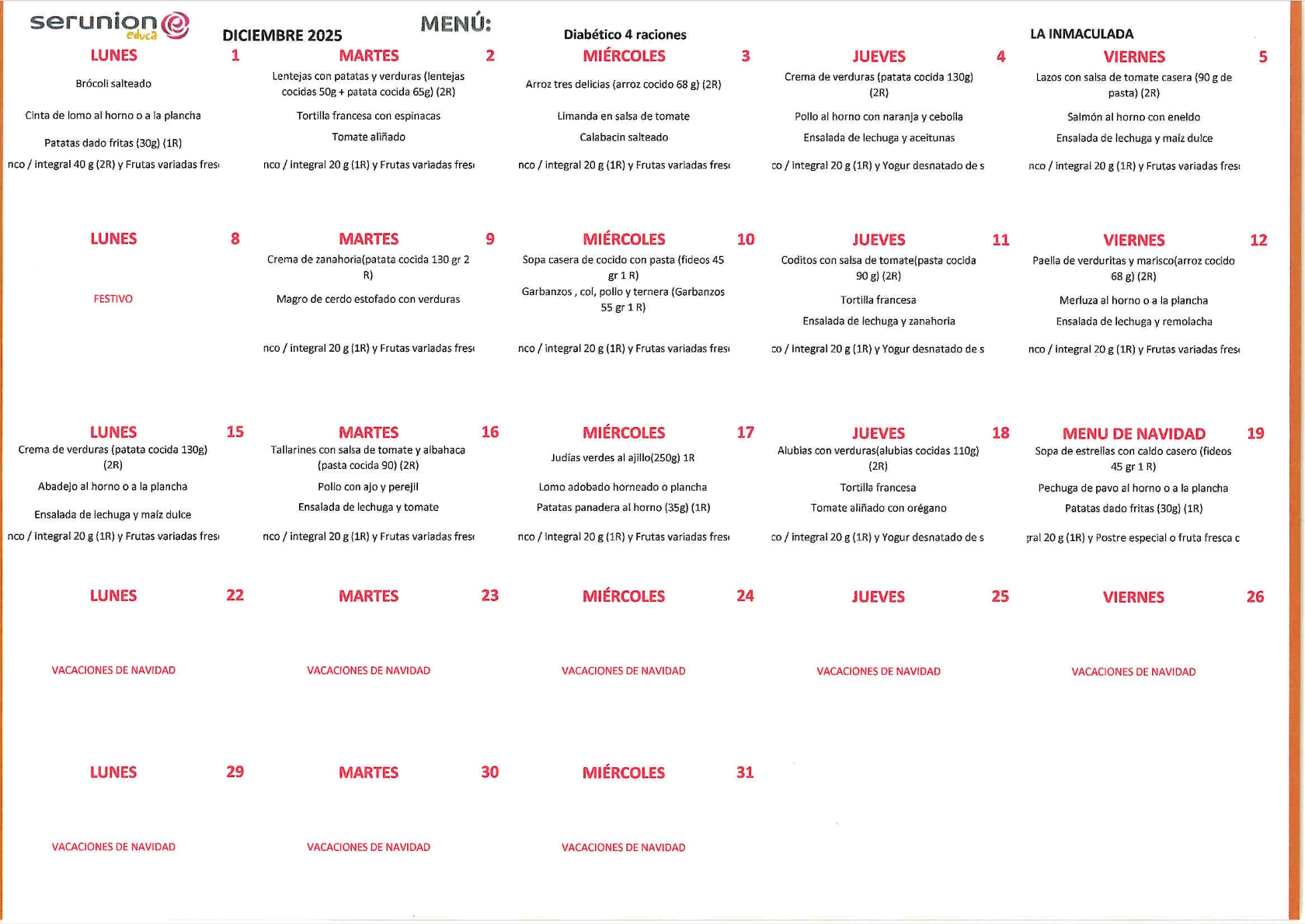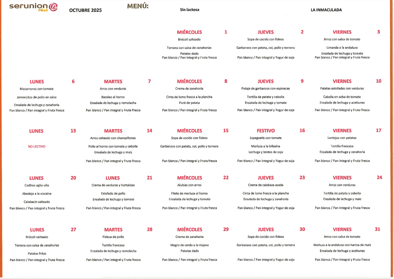 En el colegio también disponemos de menú adaptado a todas las necesidades de nuestro alumnado.