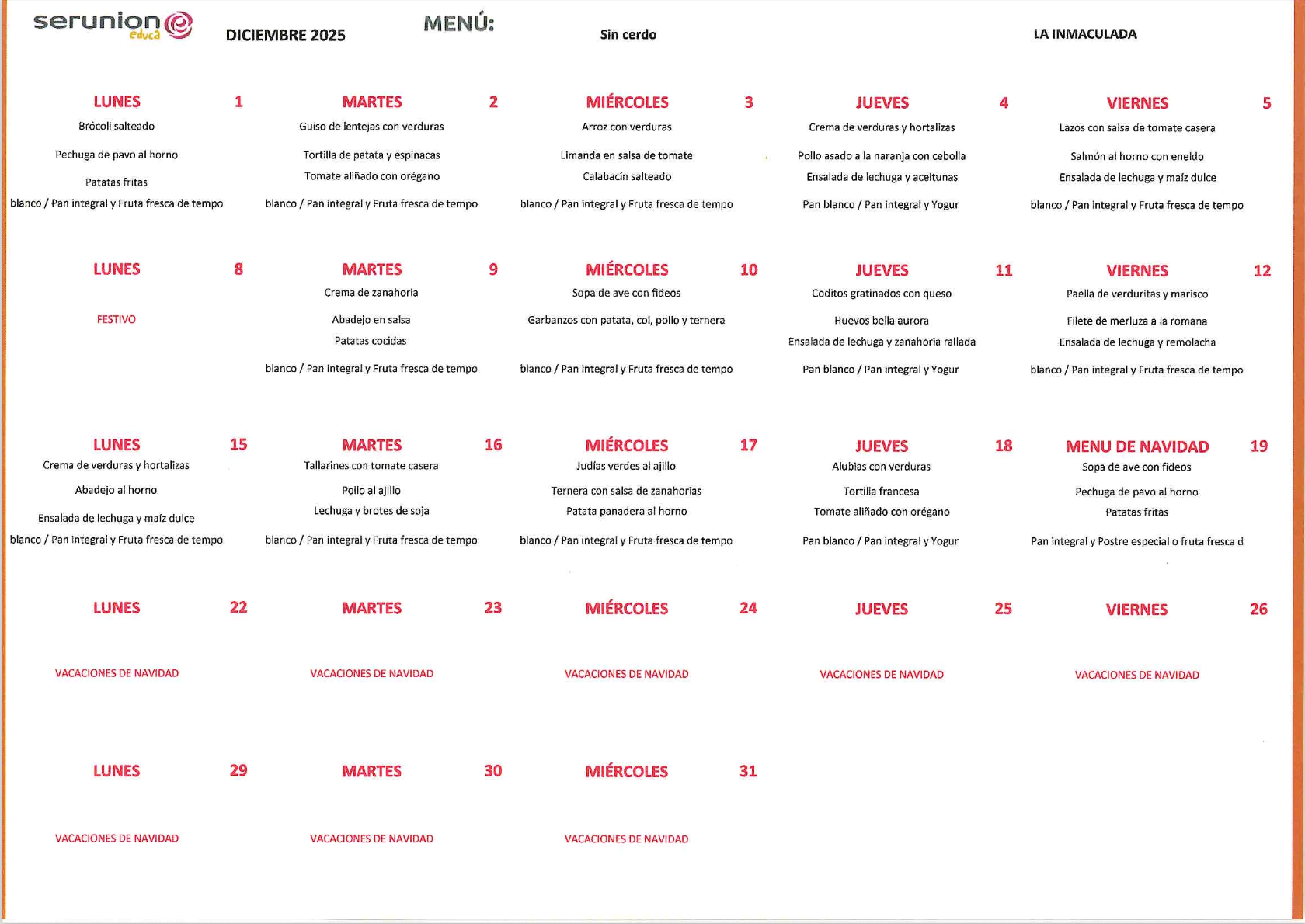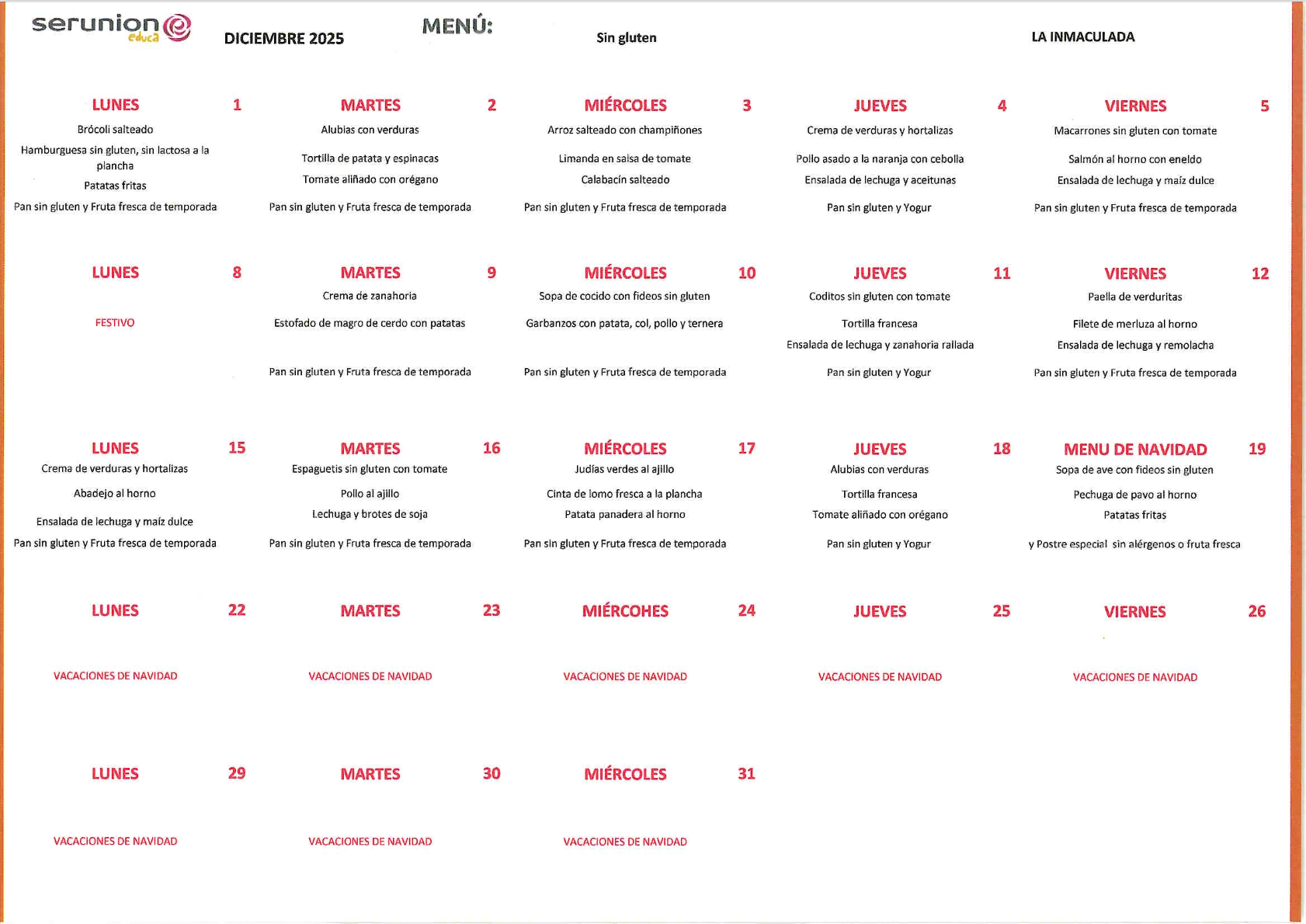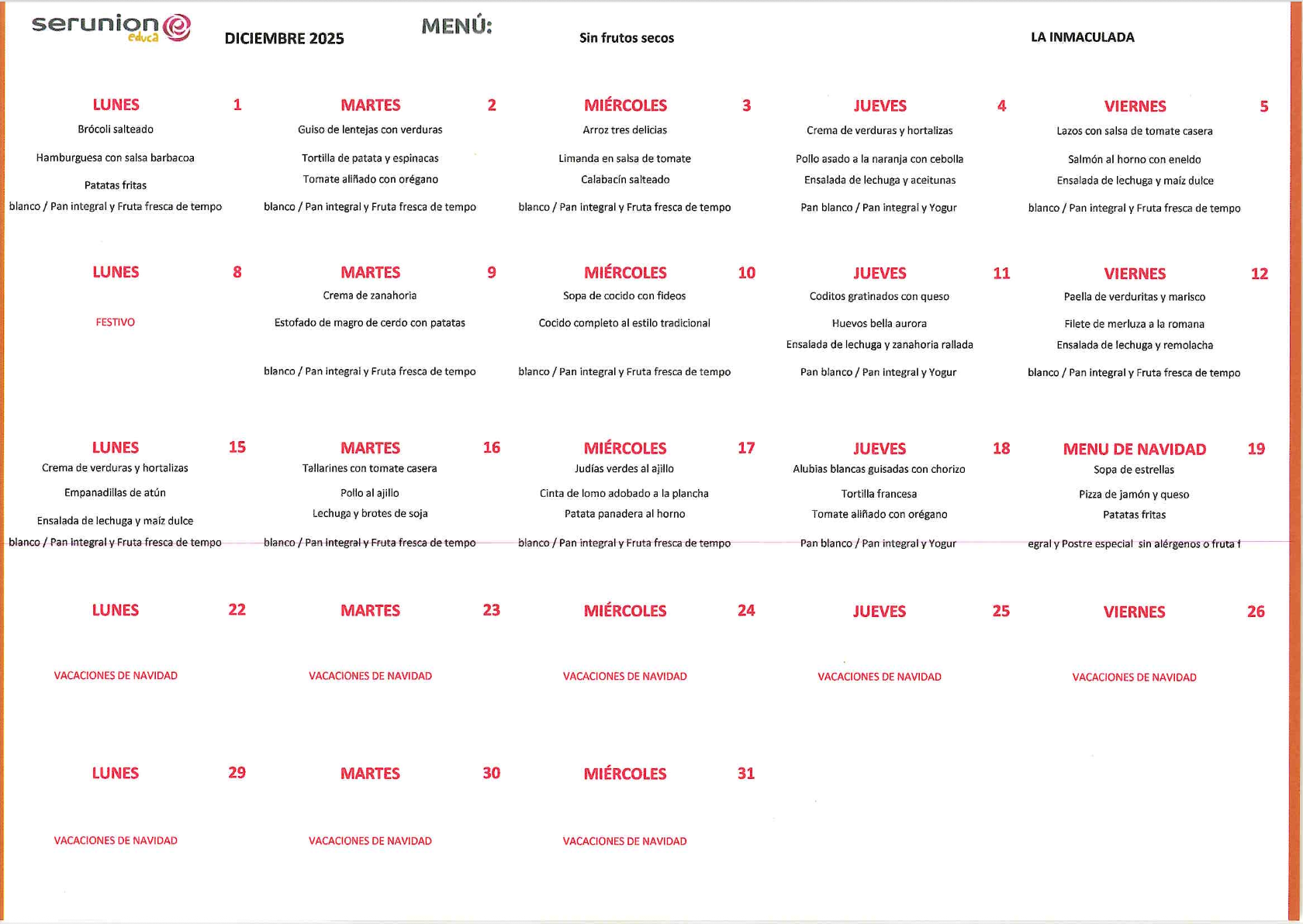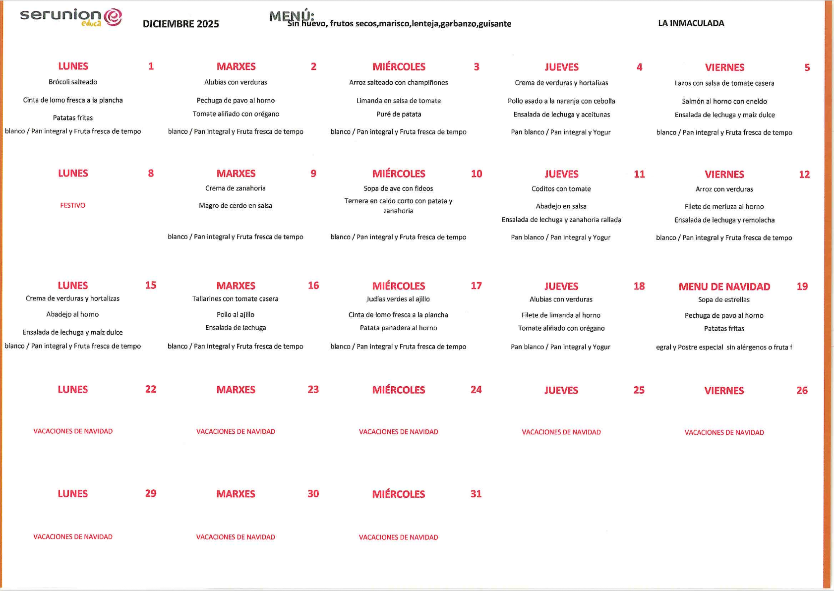En el colegio también disponemos de menú adaptado a todas las necesidades de nuestro alumnado.